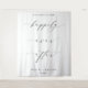 Add the finishing touch to your wedding with this custom wedding quote backdrop. This wedding backdrop features a minimalist design with a script calligraphy heading. The script heading is an image that cannot be edited. All of the other text is fully editable. This wedding backdrop is the perfect accompaniment to your wedding, engagement party, wedding breakfast, couples shower or vow renewal. For more advanced customization of this design, simply select the "Customize It" button above.