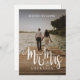 Le nouveau M. et Mme ! Félicitations pour votre aventure de mariage romantique. Partagez l'actualité de l'évènement avec votre famille et vos amis avec cette célébration personnalisée "Nous avons fui" et après la mariage. Le blanc "Mr & Mrs." est numériquement manuscrit dans un style calligraphie moderne de calligraphie et dispose d'une élégante esperluette (&). Ajoutez votre nouveau nom à la couverture de la page (n'oubliez pas d'espacer les lettres pour une couche supplémentaire d'élégance) et partagez votre photo préférée du jour du mariage. Customisez le dos avec un message de votre part. Si vous ne faites aucune fête post-mariage, retirez le texte en ajoutant un espace aux champs de texte personnalisés ou retirez-le complètement lorsque vous customisez la carte à votre goût!