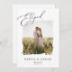 This modern yet elegant elopement announcement features a script greeting that says "Eloped", rustic photo frame, and classic typography. Customize it further by adding additional text or photo to the back.