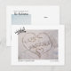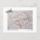 Wedding Announcement postard. "Just Married" is written in the sand - great for those who had destination weddings, elopements, beach ceremonies or honeymooned on the beach! Add your own wedding photo and customize with your own wedding details for a cute, easy to personalize, custom card for family and friends!
