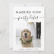 Modern elopement or small wedding announcement card to let extended family and friends know that your wedding plans changed, requiring you to elope or reduce the number of guests at your wedding to a small intimate group, but that you will host a celebration party in the future. The front features your photo and "Married Now, Party Later" in a mix of simple typography and trendy script. Under your photo you can add your first names and wedding date. On the reverse side you can personalize your message in more detail and your names in a signature script.
