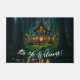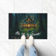 Welcome your special guests with the painting of a peaceful Tolkienesque Elven castle in a serene forest by a pond at dusk. Fairy lights illuminate the surroundings. Image was made with Leonardo.ai.