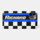 L'aide protègent votre iphone contre des coups et de petits accidents, avec ce cas iphone5. Coque iphone automatique graphique original de sport pour de grands et petits garçons. Perfectionnez pour bourgeonner les fans de sport mécanique et les chefs automatiques d'essence. Ceci cas uniquement conçu comporte le drapeau et les rayures bleues quadrillés par graphique. Personnaliser avec votre nom. L'exemple lit Richard. Exclusivement conçu par Sarah Trett.