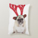 Embarrassed looking Pug wearing Reindeer Antlers Accent Pillow