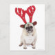 Embarrassed looking Pug wearing Reindeer Antlers Postcard