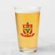 Glass Cup with coat of arms of city of St Paul, Minnesota; emblem with three horizontal stripes of blue and yellow with red emblem in the centre