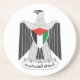 The emblem used by the Palestinian National Authority and the State of Palestine features the pan-Arab colours of the Palestinian flag on a shield carried by the Eagle of Saladin. An alternate version stating "السلطة الفلسطينية" or "The Palestinian Authority" was used by the Palestinian National Authority.