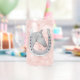Cette boîte en verre présente un emblème classique de cheval et fer à cheval avec un look dimensionnel. Le fer à cheval est personnalisé avec votre nom de famille ou vous pouvez utiliser un prénom ou le nom de votre cheval à la place. Il s'agit d'une belle addition à votre barware ou fait un grand cadeau pour les amateurs de chevaux et de courses de chevaux. Les couleurs gris argenté font écho à la couleur des chaussures de cheval. Classique, Élégant. Beau et amusant style équestre pour une soirée Derby ou à tout moment vous voulez déguster une boisson savoureuse