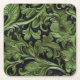 Vintage green black embossed faux leather paper coaster.