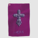 Embossed-look Gothic Cross in Purple with Monogram Golf Towel