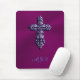 Embossed-look Gothic Cross in Purple with Monogram Mouse Pad