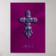 Embossed-look Gothic Cross in Purple with Monogram Poster