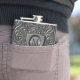 This handsome hip flask design simulates a tarnished and embossed metal in a floral pattern with elegant swirls. The shield-shaped monogram holder also looks like burnished metal. Search ID139 to see all products with this design.