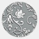 Embossed Metallic Look Damask Silver Classic Round Sticker