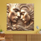 This striking canvas features two serene faces—one masculine, one feminine—sculpted in a flowing, embossed style. Rendered in rich bronze and gold tones, their foreheads touch in a moment of quiet intimacy. Hair and contours melt into one another like liquid metal, creating a sense of motion and deep emotional connection. The texture mimics high-relief sculpture, making it a bold, elegant statement piece for any space.