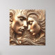 Embossed Molten Bronze Lovers in Romantic Embrace Canvas Print