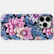 A Embossed Pink Floral With Blue Leaves iPhone 16 Pro Max Case For Her