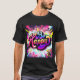 A vibrant and uplifting t-shirt design that celebrates the power of happiness. The bold, colourful font and chaotic splashes of colour create a sense of energy and excitement, while the image of a person embracing the word "Happy" conveys a message of positivity and joy. The design is framed by a black border, adding a modern and stylish touch.