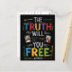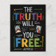 A person standing in a beam of light, surrounded by shadows, with arms outstretched and a look of relief on their face as they accept the truth and break free from the chains of deception
