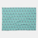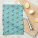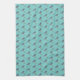 Kitchen towel featuring an embroidered Bluejay pattern on a turquoise background.