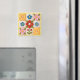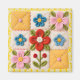 Colorful quilt block patterned fridge magnet printed with realistic looking embroidered flower and button details. Cute, decorative as well as functional collector's gift for anyone who loves quilting or sewing.
