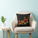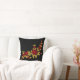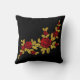 Embroidered Red Roses Golden Leaves Black Throw Pillow