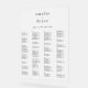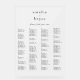 This sign can be used to organize your guests alphabetically or by table number by changing the names of the headings. This wedding sign includes enough room for up to about 120 guests. Make room for more (or less) guests by clicking the "customize" button and decrease or increase the size of the font. In addition to the placement of each guest, personalize this sign with the names of the couple.