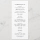 Include the names of the couple, the wedding date and location, a thank you message, the order of service, wedding party and an optional "in loving memory" memorial.