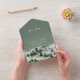This QR code sage green forest woodland wedding all in one invitation from the Emelia Collection is perfect for a woodsy destination wedding.