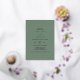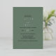 This elegant wedding invitation from the Emelia Collection is perfect for a woodsy destination wedding. The dark sage green backdrop features rustic yet simple typography, evoking a woodland mountain vibe. The couple's names, wedding date, and accent lines are beautifully highlighted in luxurious pressed silver foil for a refined and timeless touch.