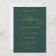 This elegant emerald green and gold wedding invitation featuring heart script calligraphy can be personalized with your information in chic typography with your wedding website details and your QR code on the reverse. Designed by Thisisnotme©