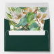 Ivory white, emerald greens, and gold accents bring an elegant touch to your wedding stationary. Watercolor floral of Autumn cream roses within, while the body of the envelope is a dramatic and moody emerald green shade. Return address on outer flap is completely personalized and customizable. Matches the Deep Emerald and Autumn Roses Invitation.