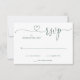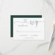 A simple elegant emerald and white script heart kindly reply RSVP card with your details set in modern typography. Designed by Thisisnotme©