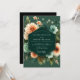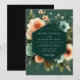 This sophisticated design features a moody and romantic atmosphere. Painterly blooms in soft apricot, peach, and pale mint green hues emerge gracefully from a deep emerald background. The artistic and dramatic floral arrangement evokes a sense of timeless elegance, perfect for a lush, fine art affair.