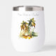 Keep your wine perfectly chilled (or warm!) with a vibrant touch of tropical serenity with this customizable thermal wine tumbler, showcasing the captivating "Emerald Canopy" watercolor design. Lush green palm trees stand tall, their fronds forming a rich, emerald-toned canopy, rendered with fluid artistry and subtle splatters for a dynamic feel. Perfect for picnics, beach trips, or enjoying a quiet moment, you can personalize it with text like "Island Sips," "My Happy Hour," or "Wine Down in Paradise."