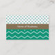 Spread the word about your awesome new business with these fashionable and trendy business cards with emerald green chevrons and polka dots with a camel brown stripe through the middle.