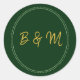 Seal your envelopes or favors with this chic Emerald Elegance wedding sticker. Featuring a classic monogram in shimmering gold against a deep emerald background, it adds a touch of sophistication to every detail. Perfect for invitations, thank-you notes, or décor accents, this versatile design ties your theme together effortlessly
