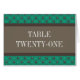 Trendy and chic Fancy Lattice Table Number Card featuring a stylish circle and diamond studded pattern over a vibrant emerald green background with a broad two-toned brown border. This elegant table card is perfect for a modern wedding. Easy to customize, simply add the appropriate table number(s) in the text field provided. Click "Customize It" to find more personalization options.