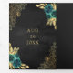 Emerald Floral Gold Lace QR Code Black Wedding Tri-Fold Invitation