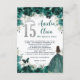Emerald Floral Silver Quinceañera 15 Prayer Card