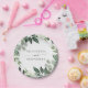 Emerald forest design on party plates, with monogram or names detail. A beautiful hunters green leafy rustic wedding design with a botanical theme. The classic text creates a formal, yet rustic suite, perfect for a summer wedding. Dark forest green reverse, or sage green option, or choose your own complimentary colour. Full suite available here https://www.zazzle.com/collections/green_foliage_botanicals-119824441720635362