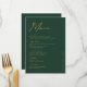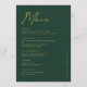 Vous recherchez un menu de table mariage ? Voici notre magnifique Emerald Gold Modern Typography Mariage Table Menu! Ce menu mariage simple exhale un raffinement intemporel avec son élégante typographie moderne et son design épuré et minimaliste. C'est le choix idéal pour les couples à la recherche d'invitations de mariage sobres mais élégantes qui captent l'essence d'un élégant thème mariage moderne.