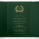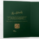 The centerpiece of this romantic, glamourous wedding design is the classic traditional monogram . It features the couple's initials surrounded by a crest of leafy botanicals and branches, along with a couple's photo that adds elegance and beauty to the card—all in deep emerald green and gold-tone colours. Easily personalize your event and RSVP details by using the QR code, which directs your guests directly to your website.