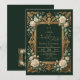 Emerald wedding invite design features an ornate gold frame with delicate ivory florals on a rich green background for timeless luxury. The elegant central space beautifully showcases names, dates, and ceremony details with regal sophistication. Perfect for formal weddings, winter celebrations, classic receptions, and upscale evening events. Antique-inspired scrollwork and soft botanical accents create romance, depth, and refined charm. Ideal for couples seeking statement stationery with vintage elegance. Optimized to improve Zazzle search visibility and attract ready-to-buy shoppers.