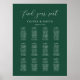 Classic Calligraphy Script Wedding Seating Plan Find Your Seat. Personalized Dark Emerald Green Seating Chart for 120 guests (12 tables). Just click the customize further link, shown under the text personalization area on the right, and choose your custom colour background. This sign poster template makes it fast and easy to create stunning additions to your wedding decor. Signs can be enlarged, there are many sizes to choose from, as well as options for custom framing and matting.