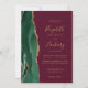 Emerald Green Agate Burgundy Photo QR Code Wedding Invitation