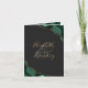 Une aquarelle couleur vert émeraude ornée d'une parties scintillant en faux or apparaît dans deux coins de cet élégant design. Personnalisez l'avant avec les noms du couple en écriture manuscrite couleur or sur une grande esperluette grise sur un arrière - plan sombre. À l'intérieur, ajoutez une photo du couple à gauche et de la faire-part de mariage à droite en écriture manuscrite couleur or, en cuivre et en italique sur un arrière - plan noir en ardoise, avec les coins d'agate vert émeraude répétés à l'avant de la carte. L'envers est assorti d'un design d'agate vert et or, avec une place pour les initiales monogrammes du couple en écriture manuscrite or.