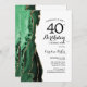 Emerald Green Agate White Gold 40th Birthday Invitation