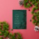 Elegant wedding invitations with vintage-style floral detailing. Dark green with gold foil.