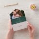 This chic minimalist all in one wedding invitation can be personalized with your special photo, monogram initials and wedding day information on n emerald green background. The invitation includes a perforated RSVP card that’s can be individually addressed or left blank for you to handwrite your guest's address details. Designed by Thisisnotme©